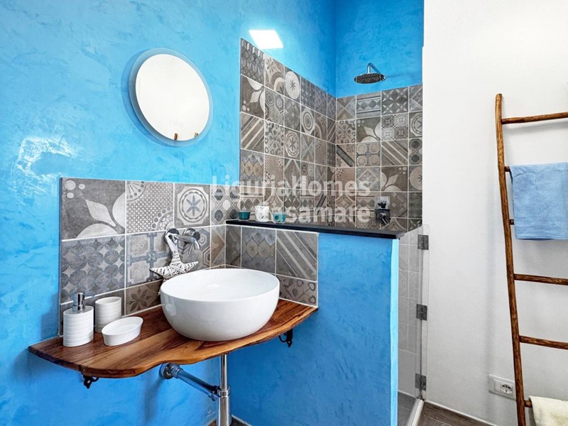 L'appartamento in vendita è frutto di un minuzioso restauro di un antico lavatoio del quale si è cercato di mantenere i dettagli storici, come le travi in legno a vista. L'ambiente principale, grazie all'ottima esposizione, risulta luminoso e accogliente. Attraverso una soluzione d'arredo è possibile separare la zona notte dalla zona giorno garantendo maggiore privacy e funzionalità. L'appartamento in vendita a Pompeiana presenta un bagno progettato nei minimi dettagli e una comoda cabina armadio. Completa la proprietà un pratico angolo lavanderia.