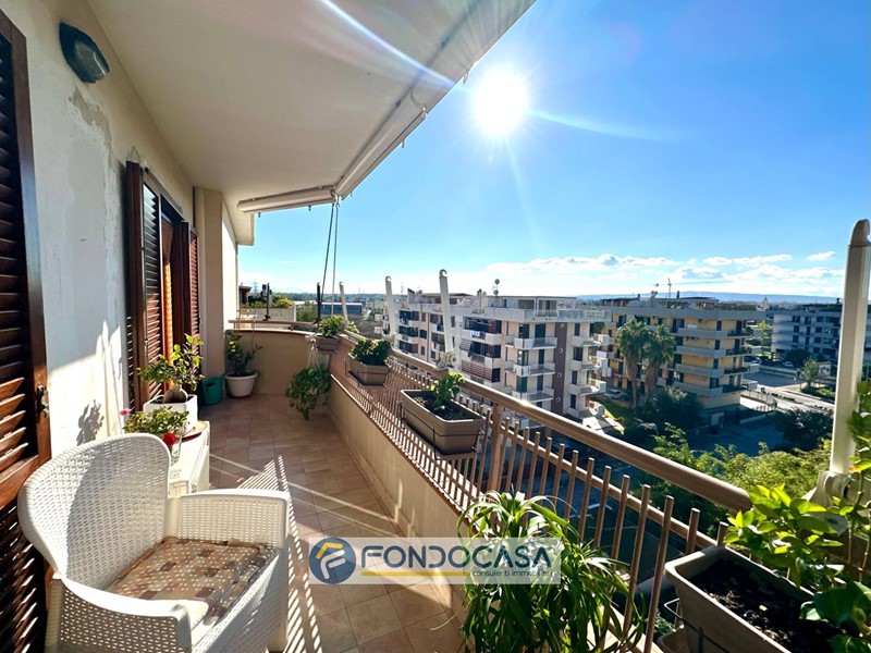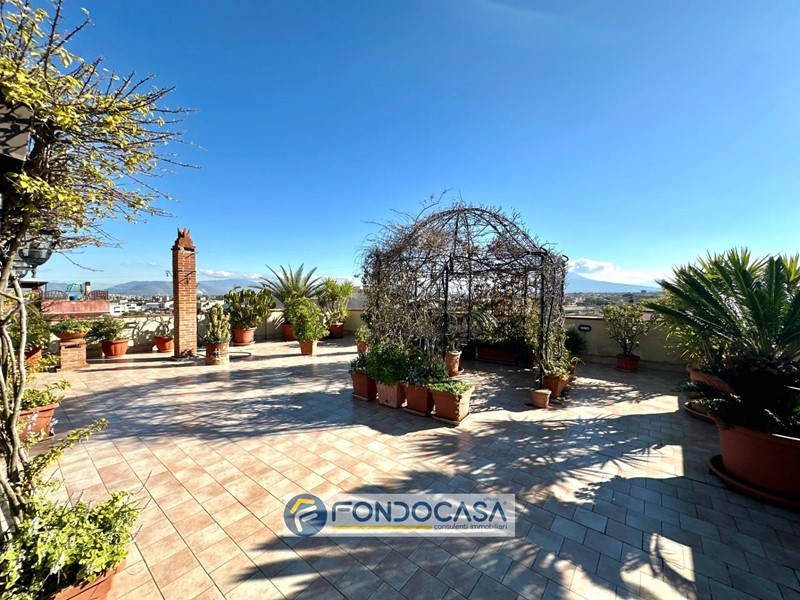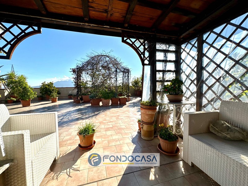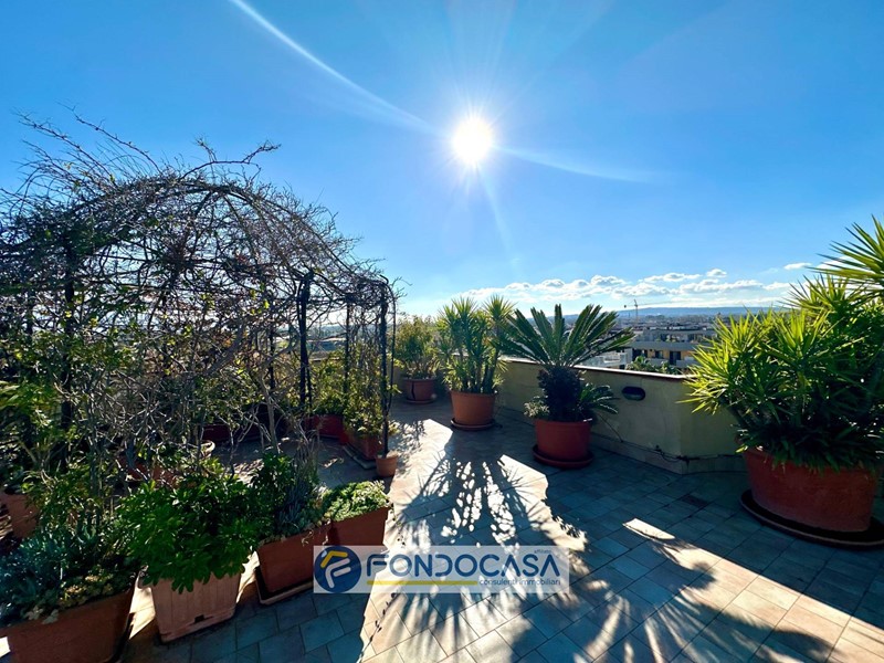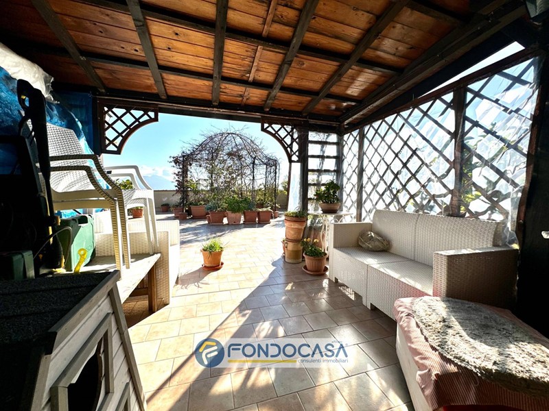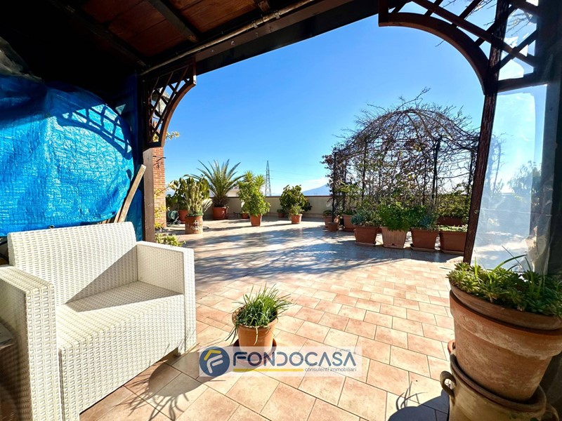 un terrazzo di 180 mq, completamente pavimentato e di proprietà esclusiva, situato al piano superiore e raggiungibile comodamente tramite scala esterna.