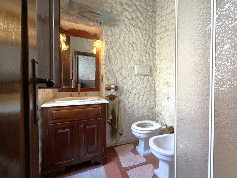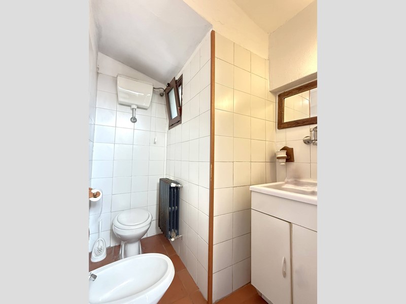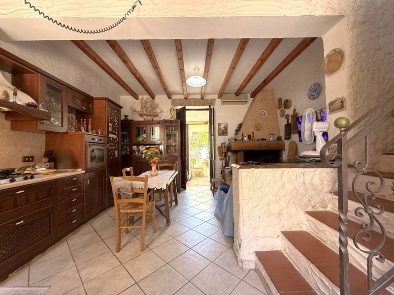 Una scala interna con elegante ringhiera in ferro battuto conduce al piano superiore, dove si trova la zona notte, composta da una camera da letto è spaziosa e luminosa, con finiture accoglienti e ben curate. La casa è dotata di due bagni, funzionali e ben distribuiti.