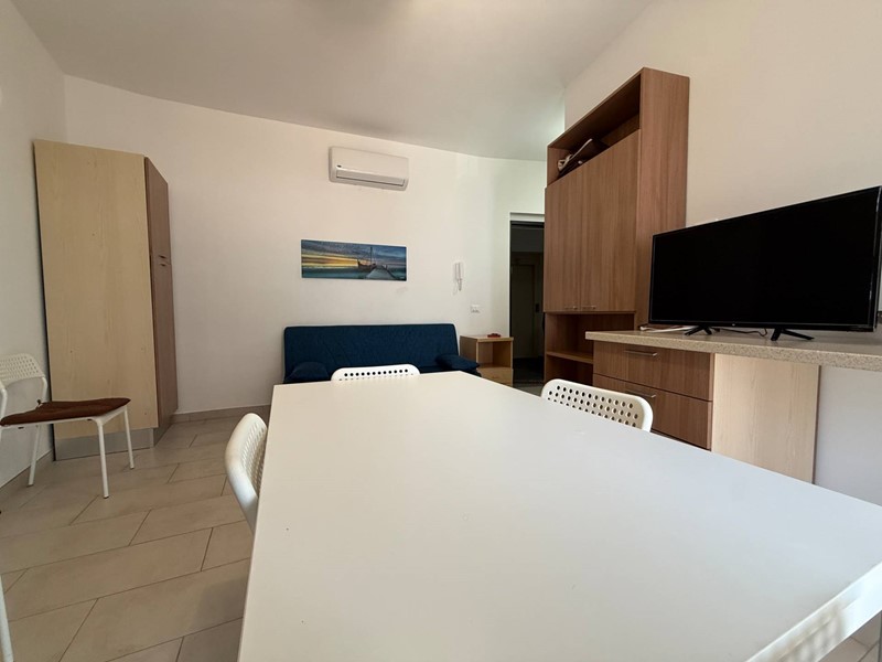 Montauro Lido, località Calalunga, situato a pochi passi dal mare, appartamento finemente arredato posto al primo piano in elegante contesto residenziale di recente costruzione munito di ascensore, composto da: ingresso su soggiorno con cucina a vista e accesso diretto al terrazzo, camera matrimoniale, cameretta, bagno con cabina doccia e un balcone. Dotato di riscaldamento autonomo con pompe di calore caldo/freddo e posto auto assegnato in corte condominiale. Ideale per professionisti. Disponibile da subito, contratto transitorio 12 mesi.