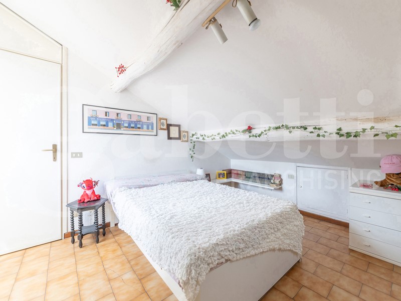 La zona notte comprende due camere da letto caratterizzate da travi a vista, infissi in parte nuovi e tapparelle automatizzate.
