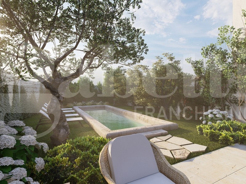La proprietà si sviluppa su quattro ampie campate con volte a stella, che conferiscono agli ambienti un fascino senza tempo e un'eleganza architettonica di rara bellezza. La struttura si affaccia su una deliziosa corte laterale interna, ideale come patio o zona relax, e si completa con un ampio giardino retrostante, riservato e silenzioso, dove è possibile realizzare una piscina privata, perfetta per valorizzare ulteriormente la proprietà e creare un'oasi di benessere nel cuore del paese.