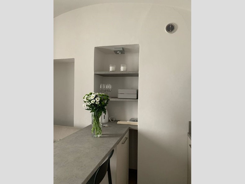 L'appartamento, al 1° piano, è composto da una spaziosa zona giorno con cucina a vista, ideale per rilassarsi e intrattenere, e una confortevole camera matrimoniale. Goditi la brezza del lago direttamente dal tuo soggiorno, con ampie vetrate che offrono una vista impareggiabile.