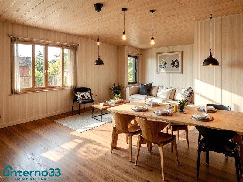 L’abitazione si apre su una spaziosa e luminosa zona giorno, dove il salone con camino crea un’atmosfera calda e accogliente. La zona pranzo si integra perfettamente con la cucina abitabile, corredata da un pratico ripostiglio. La zona notte è composta da una camera matrimoniale e da un bagno finestrato. Con una miglior ridistribuzione degli spazi esterni è possibile creare una seconda camera da letto padronale con cabina armadi.
