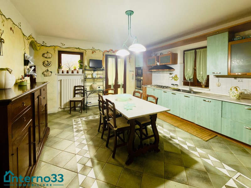 L'ingresso al piano terra accoglie con una zona giorno luminosa, caratterizzata da ampie vetrate che offrono una vista mozzafiato sul paesaggio circostante. La cucina abitabile, completa di una pratica dispensa e servizi, rappresenta il cuore della casa, ideale per conviviali cene in famiglia. Proseguendo al piano superiore, si trova un'accogliente salotto dotato di camino, che conferisce calore e intimità agli spazi. La zona notte è composta da tre camere da letto, ciascuna con il proprio servizio privato, garantendo comfort e privacy per tutti gli ospiti. Al piano S1, la villa offre una taverna con cucina, perfetta per momenti di relax e intrattenimento, insieme a un salotto con camino, che invita a serate accoglienti. Non manca una zona cantina, ideale per gli amanti del vino.