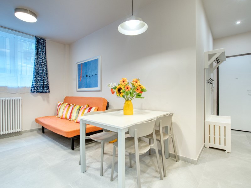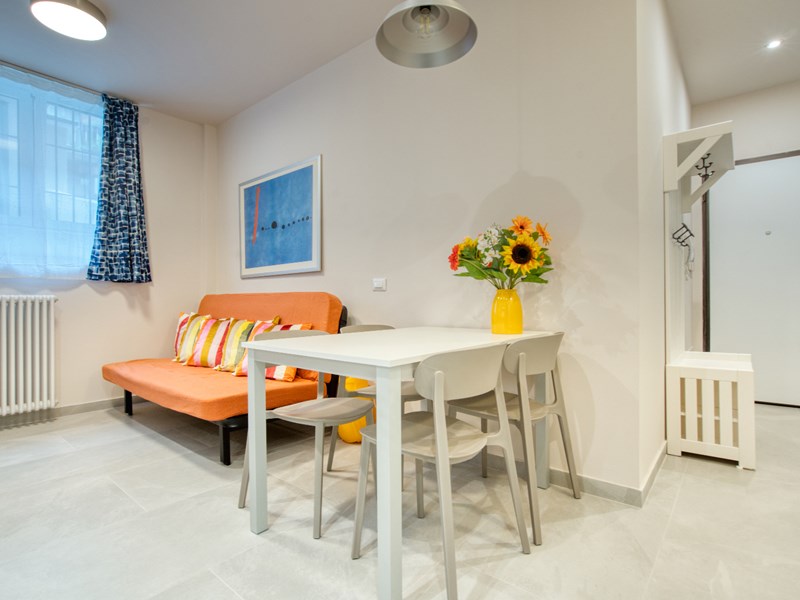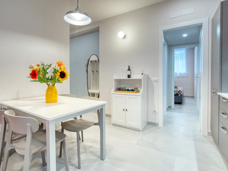 L'appartamento è composto da ingresso, zona cucina/living (attrezzata di tutti gli elettrodomestici), una camera da letto matrimoniale con armadio a 4 ante, bagno con ampia doccia, nella zona living è presente un comodo divano letto apribile per due persone. L'appartamento puo' quindi ospitare fino ad un max di 4 persone. La casa è dotata di riscaldamento centralizzato e aria condizionata. Elettrodomestici presenti: lavatrice, lavastoviglie, frigorifero - freezer - forno - fornetto a micronde - bollitore - macchinetta Nespresso, phon e smart TV. Dotato di set di stoviglie, pentole, set di asciugamani e lenzuola. Presente il WIFI ad alta velocità. Servizio Portineria mezza giornata. Contattatemi per ulteriori info e foto