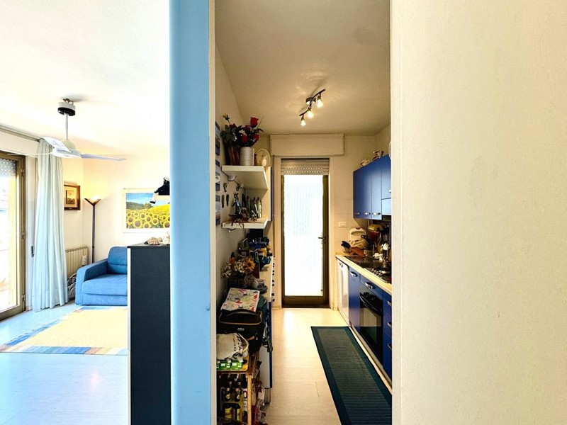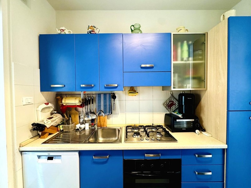 La cucina è organizzata in un pratico cucinotto, collegato a una veranda chiusa ideale come lavanderia o zona servizi.