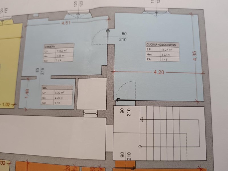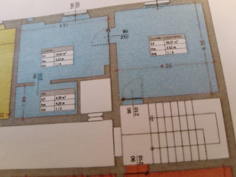 Totale superfice mq. 40 distribuito tra ingresso nella zona giorno, angolo cottura, camera matrimoniale e bagno.