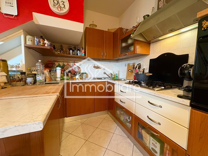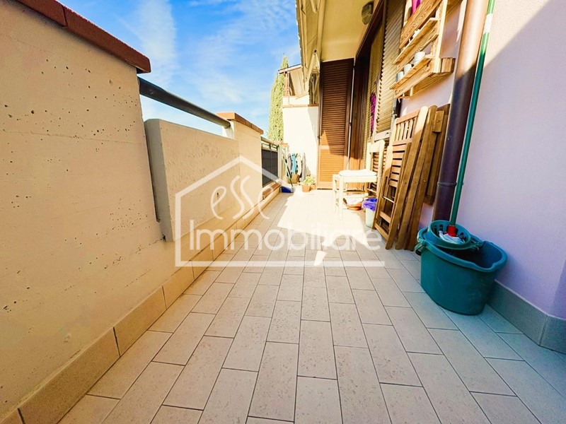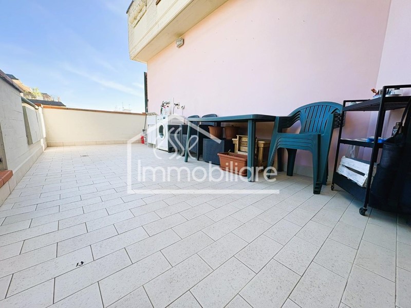 L'abitazione è composta da ingresso su zona giorno con angolo cottura e accesso su terrazza; disimpegno/corridoio, una camera da letto matrimoniale con balcone, cameretta con affaccio su ampia terrazza di circa 30 mq, ripostiglio e servizio igienico finestrato.