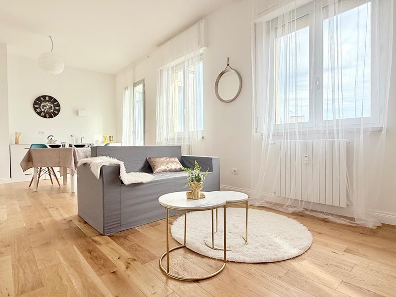 Appartamento luminosissimo e panoramico completamente ristrutturato . PERFETTO!! , pavimentazione uniforme in parquet ad esclusione dei bagni.