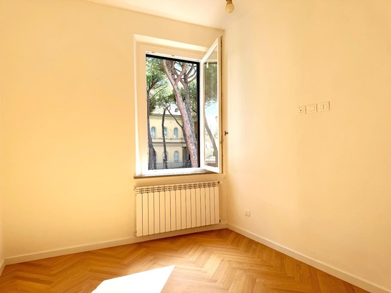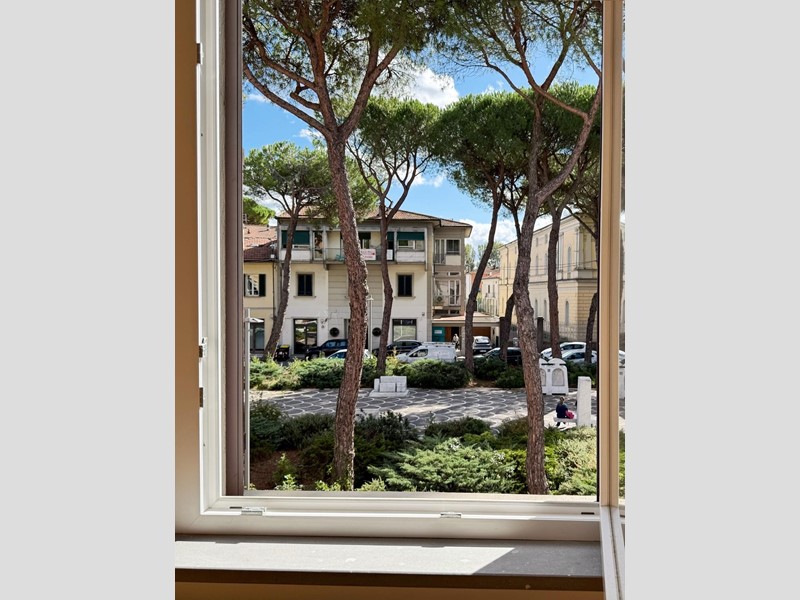 Cuore della casa è sicuramente la grande zona giorno la cui zona living affaccia su piazza dei pini e la cucina sul giardino nella corte interna, questa doppia esposizione oltre a dare una gradevole vista rende l'ambiente veramente luminoso.