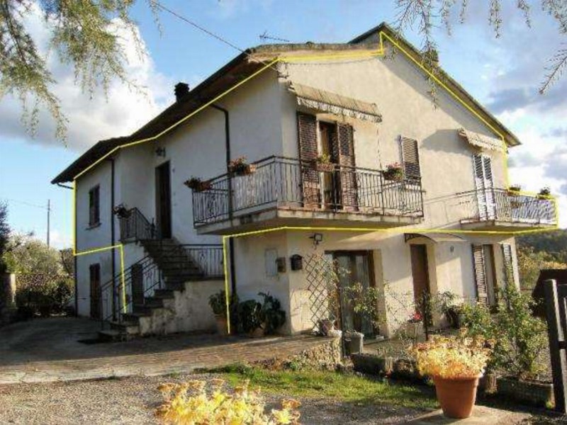 Appartamento di abitazione compreso in un piccolo fabbricato di tipo bifamiliare ubicato in posizione collinare e panoramica in zona agricola sufficientemente isolata se pur a breve distanza dall’abitato oltre a annesso rurale adibito a rimessa oltre a resede e terreni agricoli (Uliveto e seminativo).