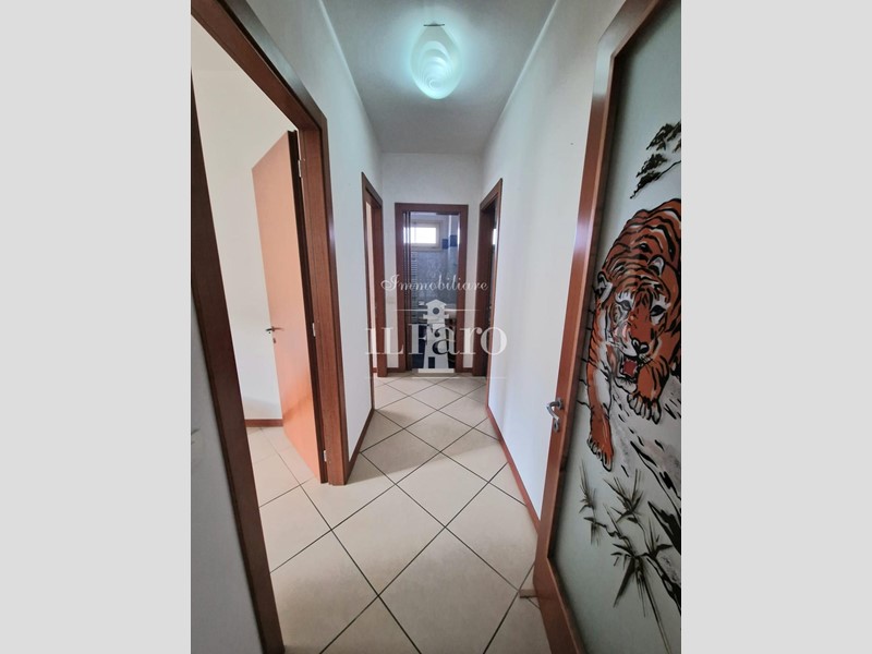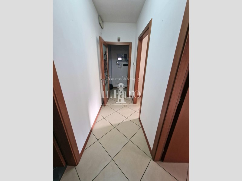L'abitazione è così composta: Entrando ci accoglie una bella zona giorno con grande porta finestra che accede alla terrazza molto spaziosa, proseguendo troviamo la cucina abitabile anch'essa con porta finestra che accede alla terrazza. Tramite un disimpegno raggiungiamo la zona notte composta da due camere da letto di cui una matrimoniale e l'altra doppia collegata al balcone posteriore attrezzato a lavanderia. L'appartamento è dotato di DOPPI SERVIZI ambedue finestrati.