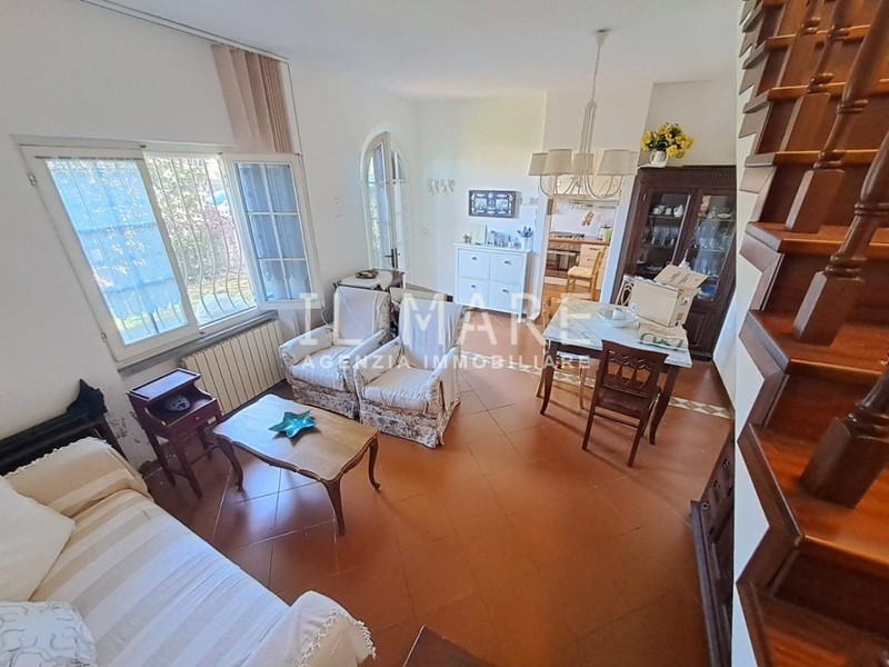 Marina di Massa A soli 500m dal mare!!!!In zona Ricercata vicino a tutti i servizi, proponiamo Villetta a Schiera angolare disposta su due livelli con accesso dal giardino privato completamente recintato, composta da ingresso in soggiorno- tinello, cucinotto separato e bagno di servizio con finestra, al piano superiore a cui si accede da scala rifinita in legno, disimpegno, camera da letto matrimoniale con ampio balcone angolare, camera media e bagno completo con doccia e finestra. posto auto privato. No spese condominiali!