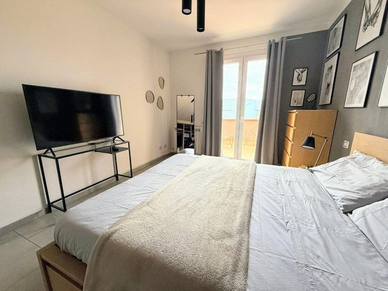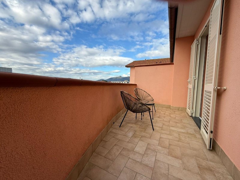 La zona notte ottimamente disimpegnata è composta da due grandi camere e ampio e bellissimo bagno con box doccia e finestra. Da tutte e due le camere abbiamo accesso ad un'altra terrazza!