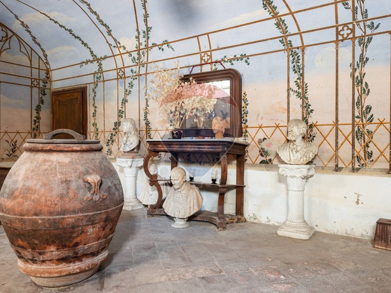 Gli ambienti interni conservano le finiture originali dellepoca soffitti affrescati, pavimenti in cotto antico, ampi saloni di rappresentanza offrendo allo stesso tempo la possibilità di personalizzazione secondo le proprie esigenze estetiche e funzionali.