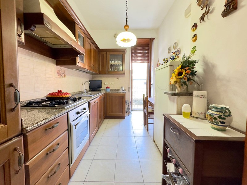 Lappartamento si presenta con un ingresso che conduce a un ampio corridoio, da cui si accede al salone e alla cucina entrambi dotati di accesso diretto al balcone. La zona notte comprende tre camere da letto, una delle quali con balcone, e un bagno finestrato. La generosa metratura interna e la distribuzione degli ambienti consentono una rimodulazione agevole degli spazi, offrendo la possibilità di realizzare un secondo bagno e di ampliare la zona giorno con un salone dotato di angolo cottura.