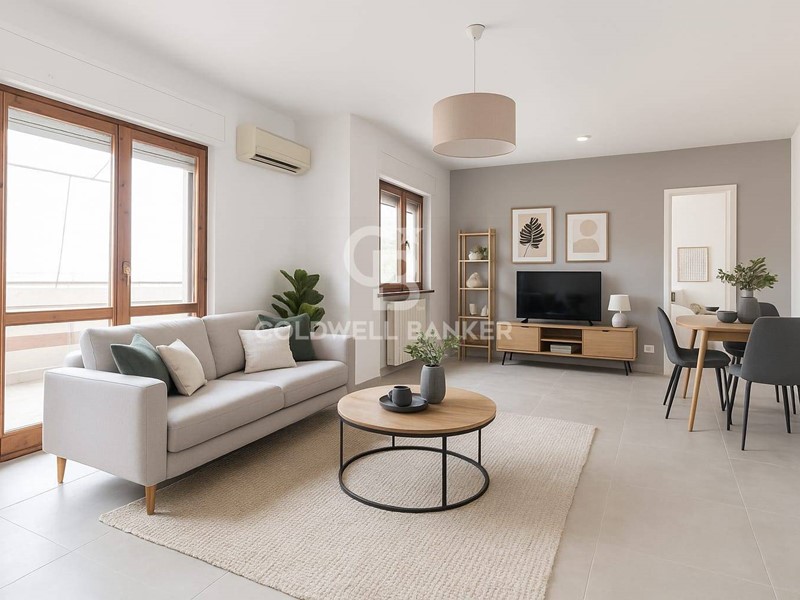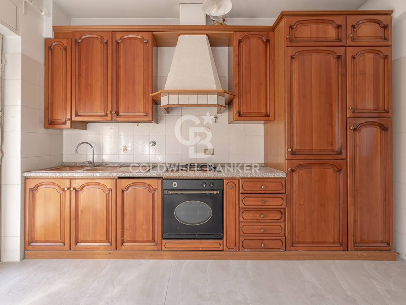Lappartamento si presenta con un ampio salone che offre accesso diretto al terrazzo, una cucina abitabile collegata a un balcone, due camere da letto e un bagno dotato di doccia e finestra. La generosa metratura consente di rimodulare gli ambienti e di realizzare, qualora lo si desideri, una terza camera da letto e un secondo bagno.