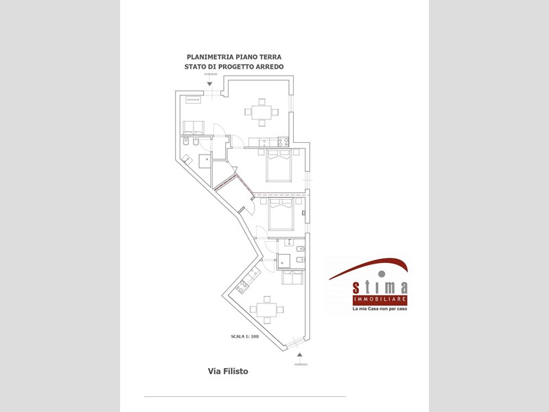 VIA FILISTO, Stima Immobiliare propone la vendita un appartamento di 55 mq posto al piano terra di un tranquillo stabile di soli tre piani. L'immobile si presenta in perfette condizioni con l'ingresso in un'ampia e luminosa cucina-soggiorno, una spaziosa camera da letto con cabina armadio, un bagno con doccia e angolo lavanderia. I recentissimi lavori di ristrutturazione lo rendono abitabile fin da subito, con finiture moderne. Caratteristiche importanti sono la presenza di infissi in PVC con vetrocamera, climatizzatori già installati e porta d'ingresso blindata. Le certificazioni degli impianti e l'agibilità completano l'intera documentazione necessaria a fronte di richiesta di un mutuo. Questo immobile è considerato molto versatile perchè adatto sia come abitazione di single/coppia o come studio professionale.