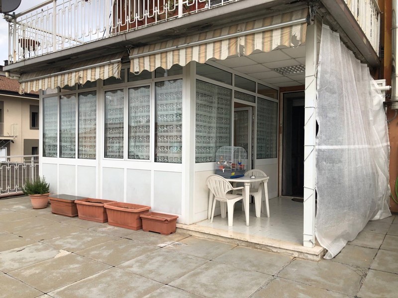 Si affitta appartamento al primo piano in Via Torino in una piccola palazzina di 5 alloggi. L'ingresso è nel soggiorno con adiacente cucina abitabile con porta finestra per andare nel grande terrazzo con spaziosa veranda di oltre 20 mq adibita a lavanderia, due camere da letto e bagno, di pertinenza c'è il garage doppio e la spaziosa cantina.