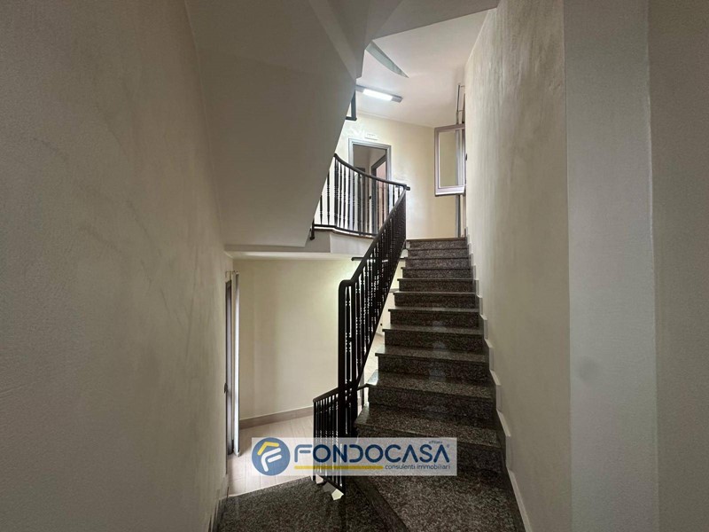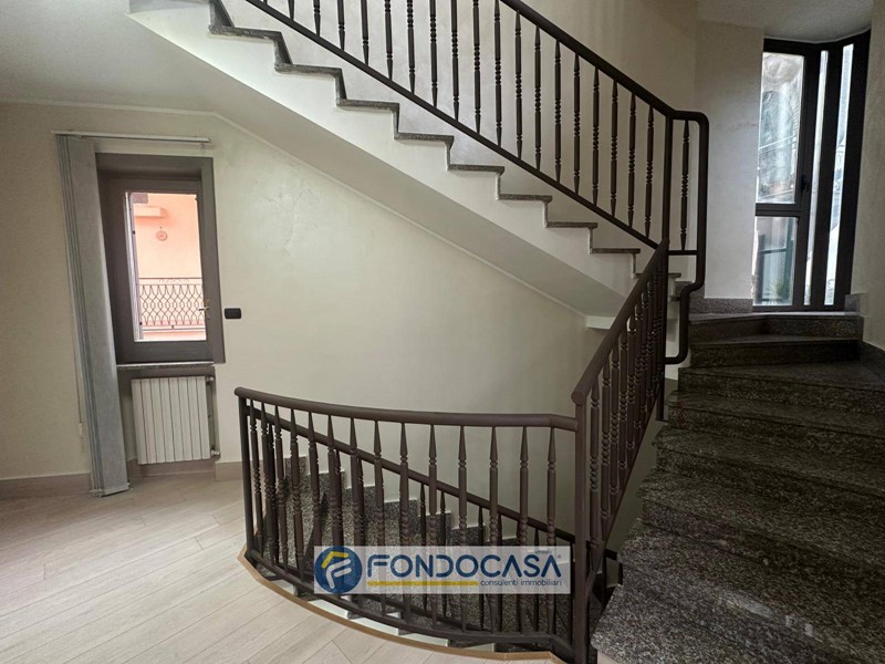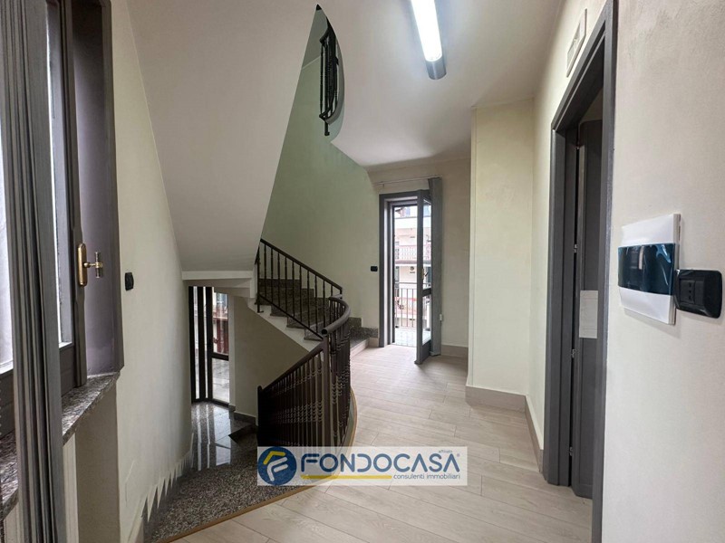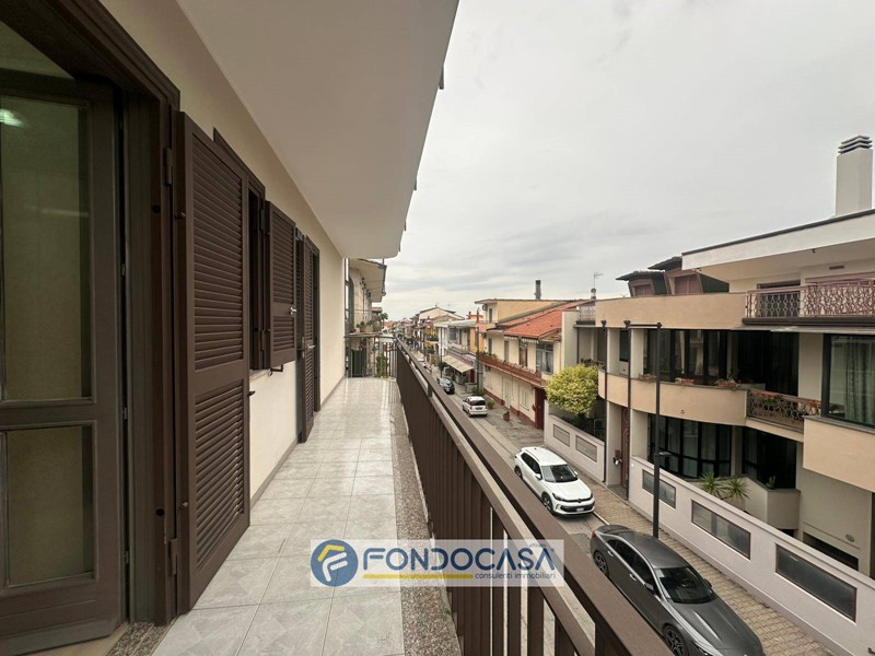 Disimpegno, due camere da letto, due bagni, balcone su Via Vittorio Emanuele e finestre su Via Fratelli Cervi.