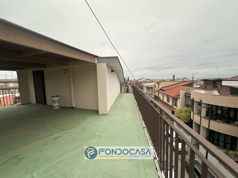 Disimpegno e ampio terrazzo coperto con vista panoramica. È già stato ottenuto il permesso per la realizzazione di un ulteriore piano coperto (circa 50 mq), con finestre e balconi speculari ai piani inferiori.
