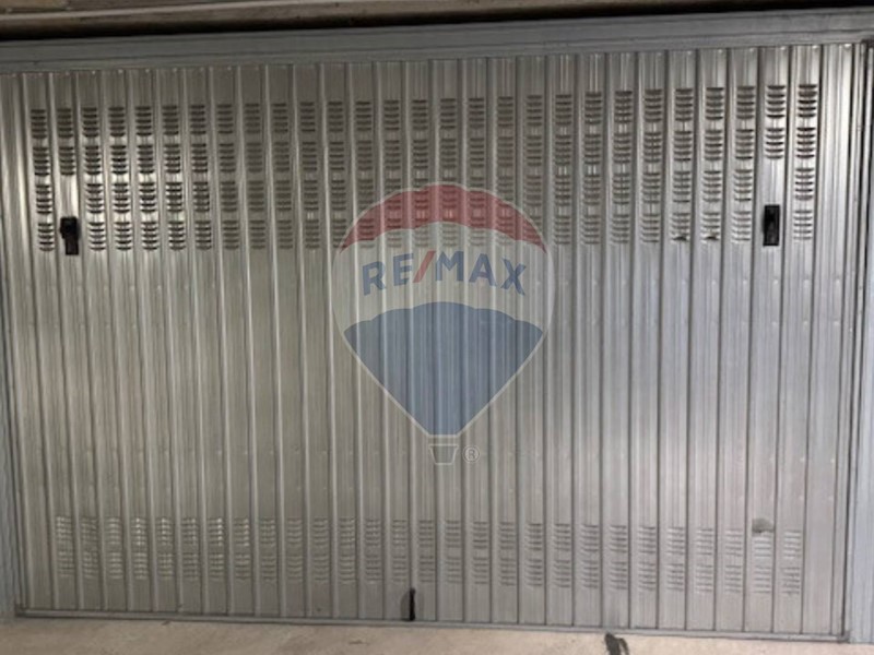 Il box è dotato di un'ampia porta basculante per l'accesso e può ospitare un'auto di medie dimensioni.