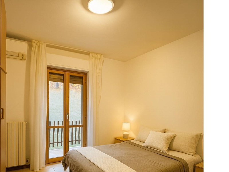 Lappartamento dispone di infissi in legno con doppio vetro e aria condizionata, garantendo comfort in ogni stagione.