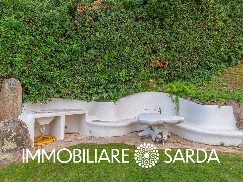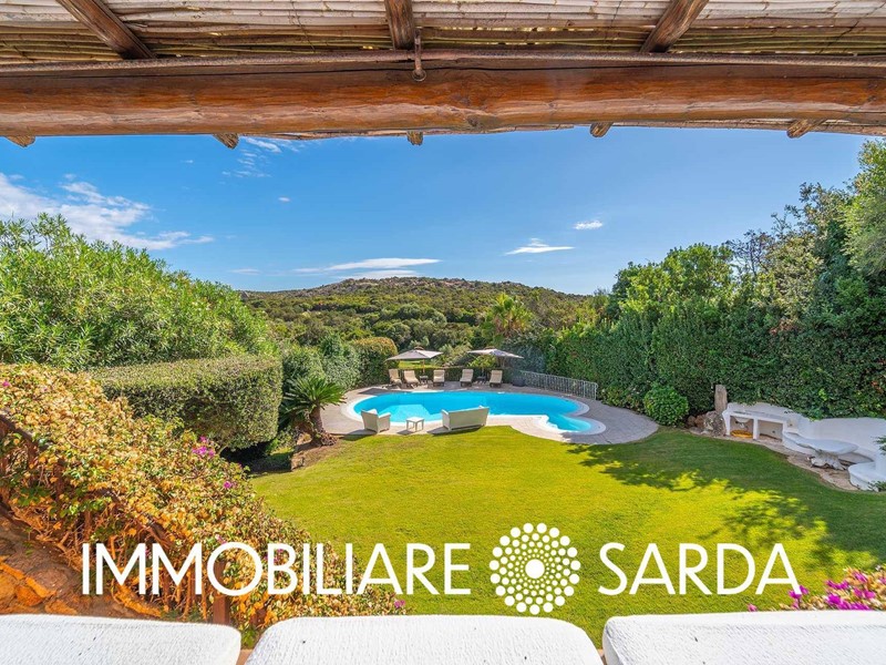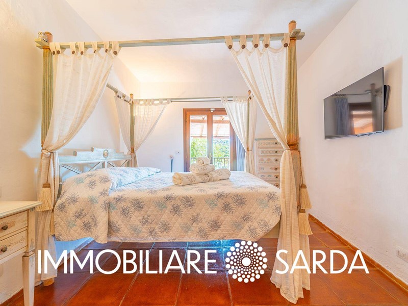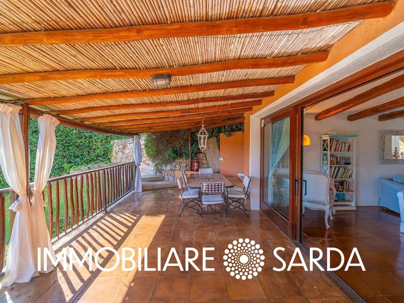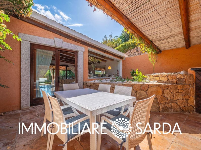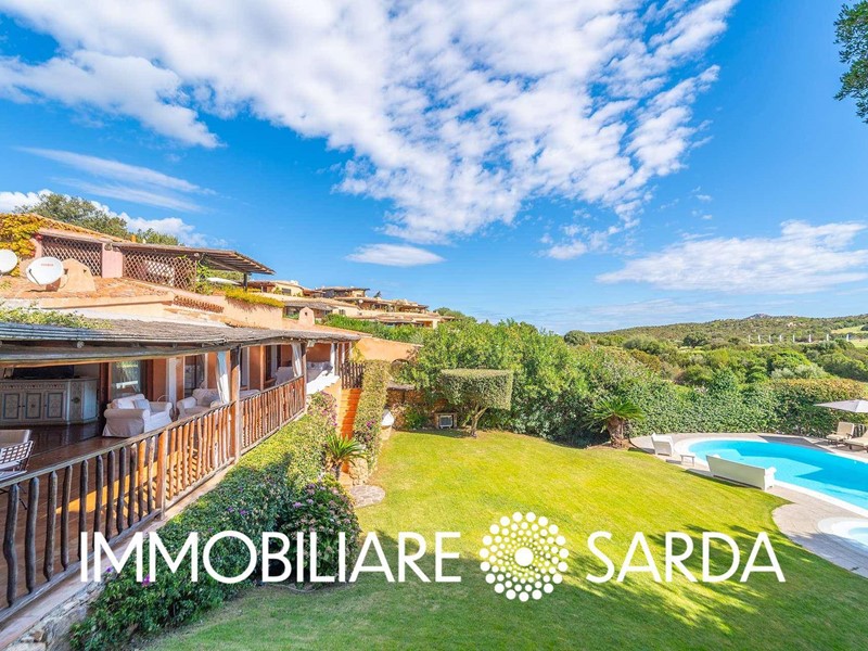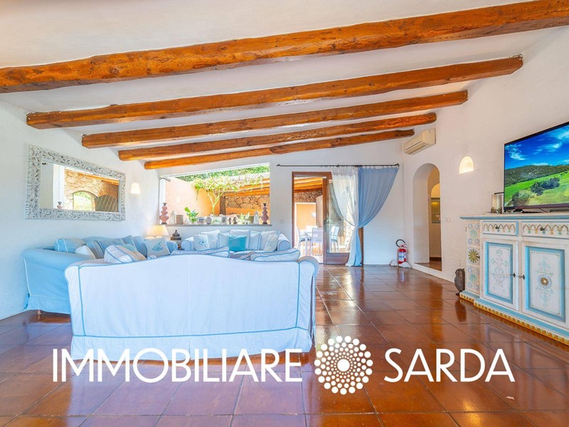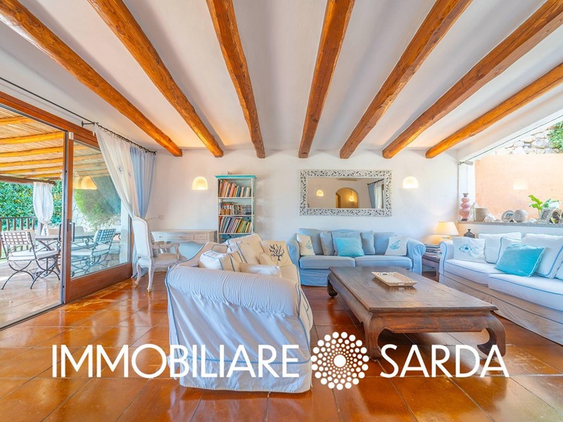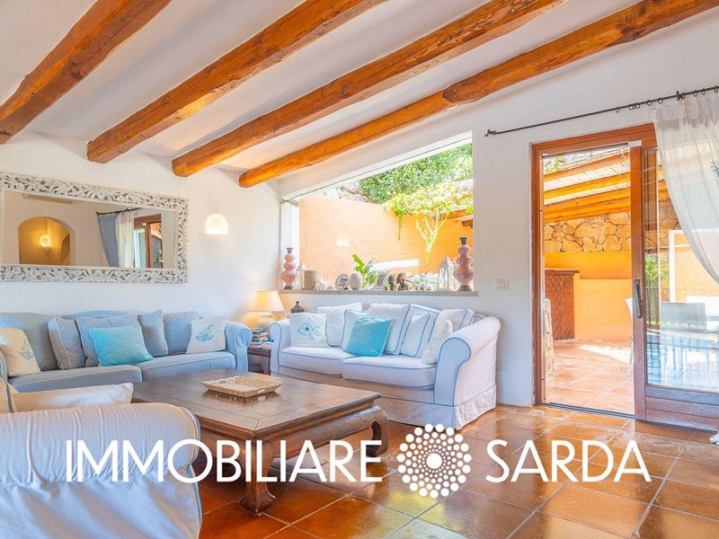 Disposta su due livelli, la villa riprende lo stile tipico smeraldino, con limpiego di materiali locali: pietra a vista, granito, cotto artigianale, legno, cannette, ferro battuto e ceramiche sarde. Al piano principale si trovano un ampio soggiorno con doppio affaccio su due terrazze, una panoramica e una più riservata, una cucina separata in stile rustico, una camera padronale con bagno en suite, due camere doppie e un secondo bagno. Al piano seminterrato due ulteriori stanze, attualmente destinate agli ospiti, offrono spazio versatile per palestra, sala hobby o zona benessere.
