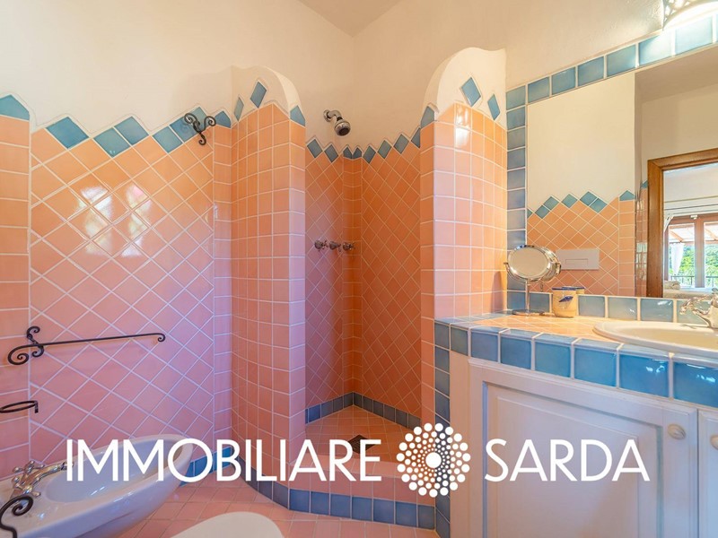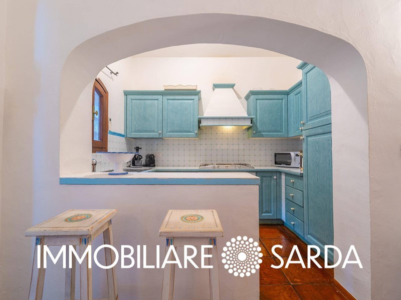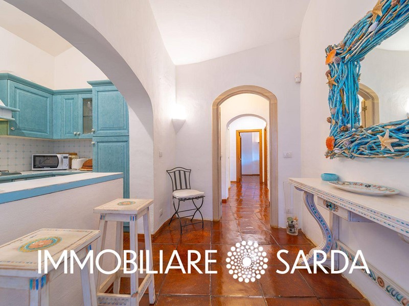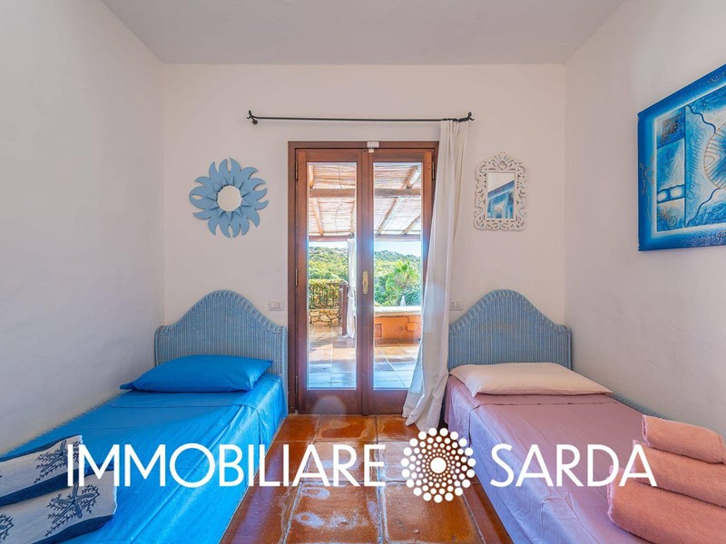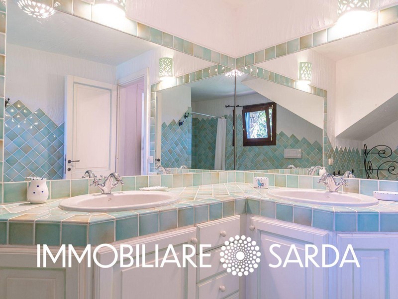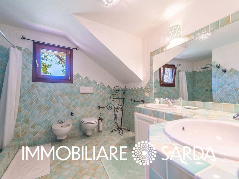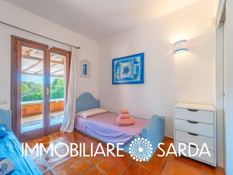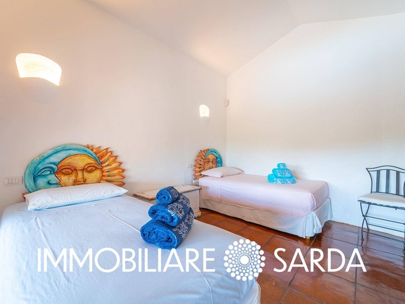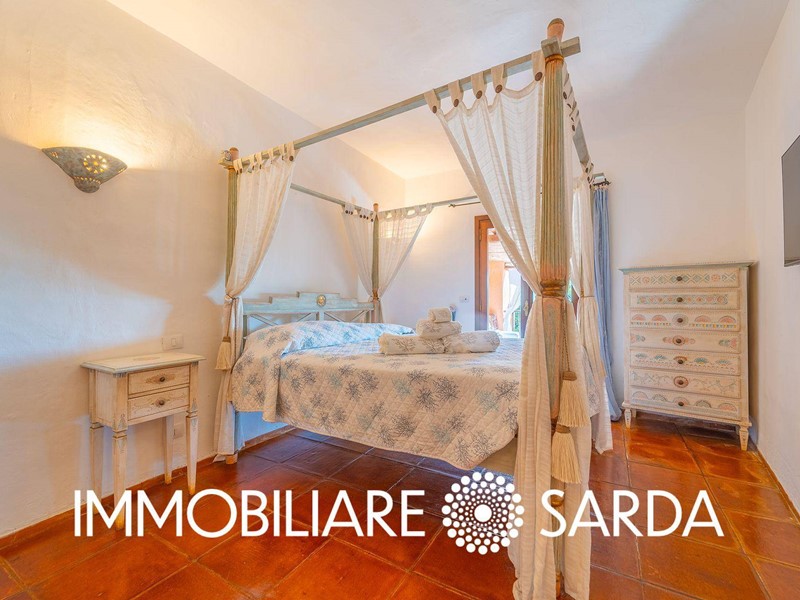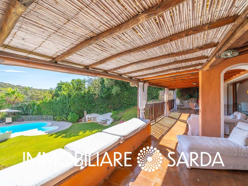 Disposta su due livelli, la villa riprende lo stile tipico smeraldino, con limpiego di materiali locali: pietra a vista, granito, cotto artigianale, legno, cannette, ferro battuto e ceramiche sarde. Al piano principale si trovano un ampio soggiorno con doppio affaccio su due terrazze, una panoramica e una più riservata, una cucina separata in stile rustico, una camera padronale con bagno en suite, due camere doppie e un secondo bagno. Al piano seminterrato due ulteriori stanze, attualmente destinate agli ospiti, offrono spazio versatile per palestra, sala hobby o zona benessere.