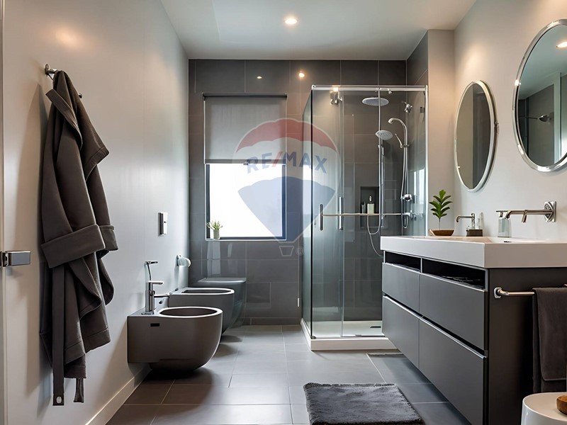 La zona notte è studiata per offrire il massimo benessere e comprende tre spaziose camere da letto. La suite matrimoniale, un vero angolo di relax, è dotata di cabina armadio e bagno privato. A completare la casa, un secondo bagno di servizio finestrato e un comodo spazio ad uso lavanderia a scomparsa, pratico e funzionale.