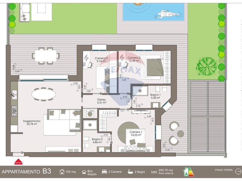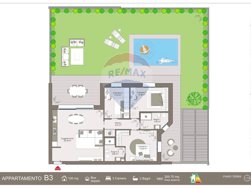 B3- QUADRILOCALE CON GIARDINO E PORTICATO