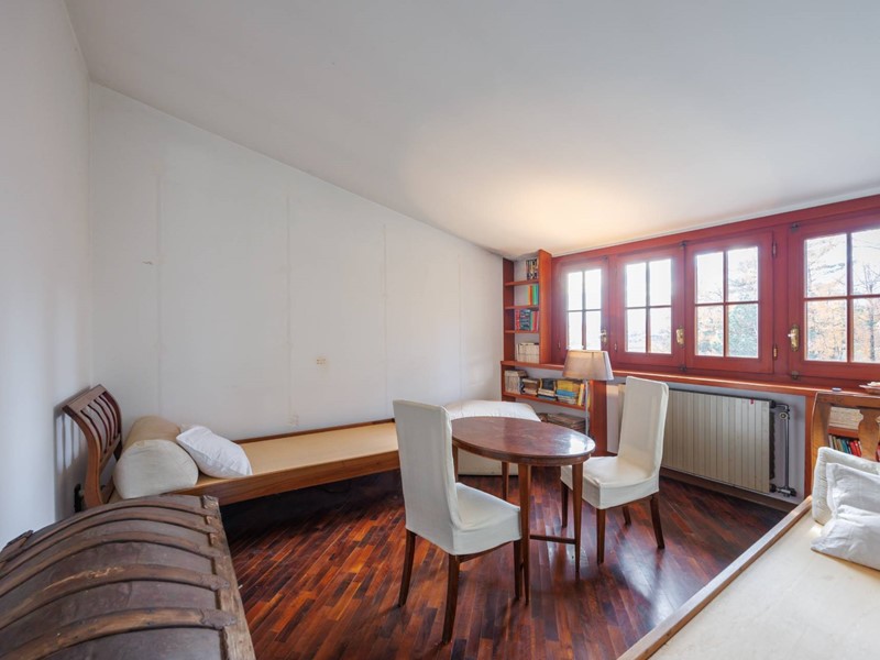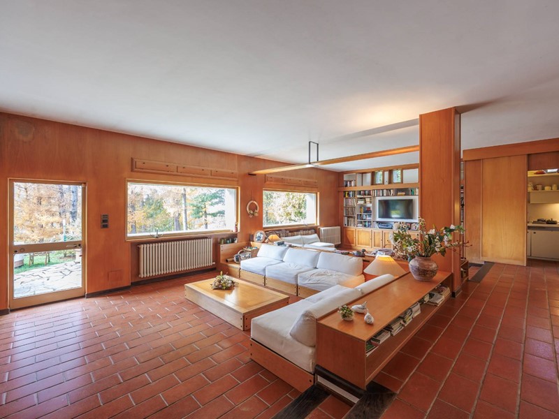 Al primo livello lingresso conduce a un doppio salone caratterizzato da grandi vetrate che donano luce naturale e continuità con il giardino. Sullo stesso piano si trovano una camera per gli ospiti, una cabina armadio, un cucinotto a scomparsa e due bagni.