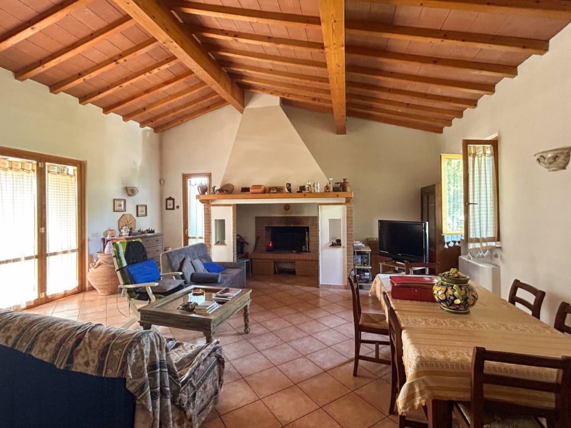 Le due unità hanno ingressi indipendenti ma sono collegate internamente; gli impianti sono predisposti per uneventuale separazione completa. La villa è circondata da un giardino privato di circa 600 mq, disposto sui quattro lati e arricchito da ulivi. La dotazione comprende riscaldamento autonomo con caldaia a metano e stufa idropellet, acqua comunale con autoclave, impianto di allarme, predisposizione per aria condizionata, fibra ottica e recinzione perimetrale.