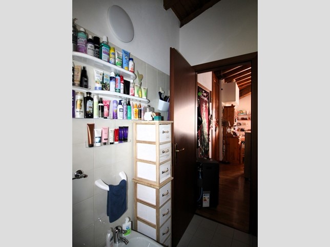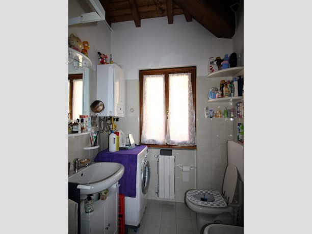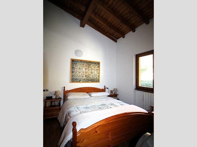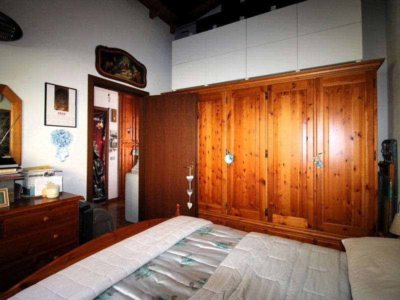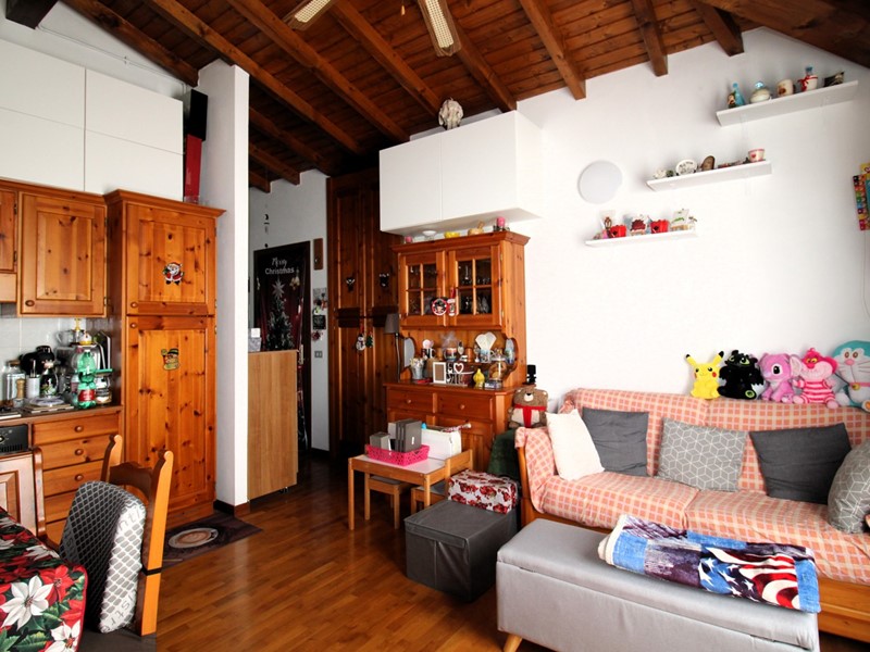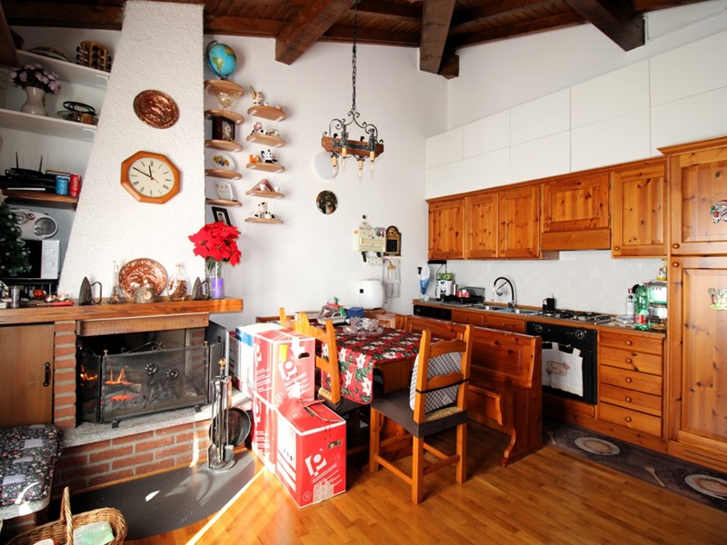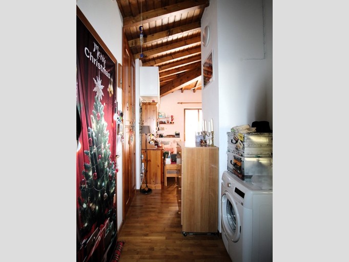 L'appartamento mansardato, al secondo ed ultimo piano, è così strutturato: disimpegno, soggiorno con camino a legna, cucina a vista ed affaccio su terrazzo panoramico, esposizione alba-tramonto. Nella zona notte camera matrimoniale e bagno finestrato con doccia.