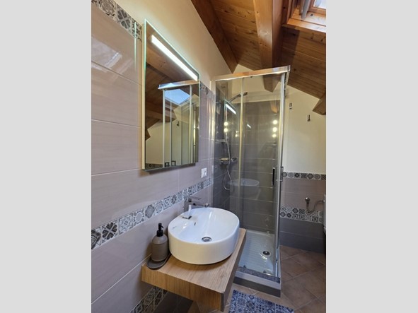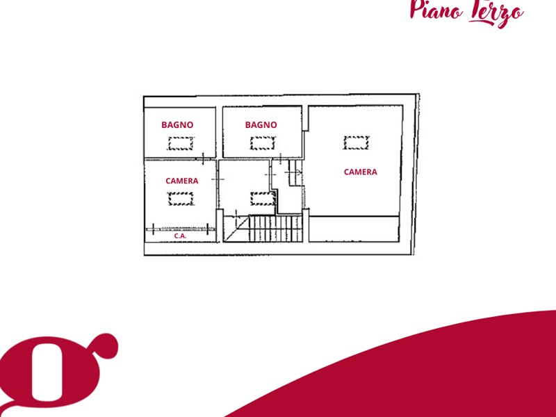 Una scala interna conduce al terzo piano mansardato, dove si sviluppano un pratico disimpegno e due ulteriori camere, entrambe dotate di bagno privato.