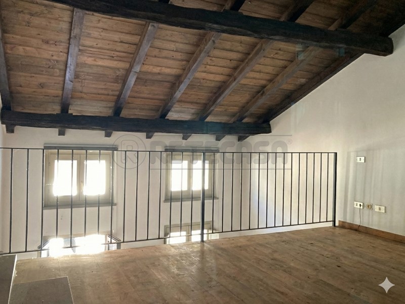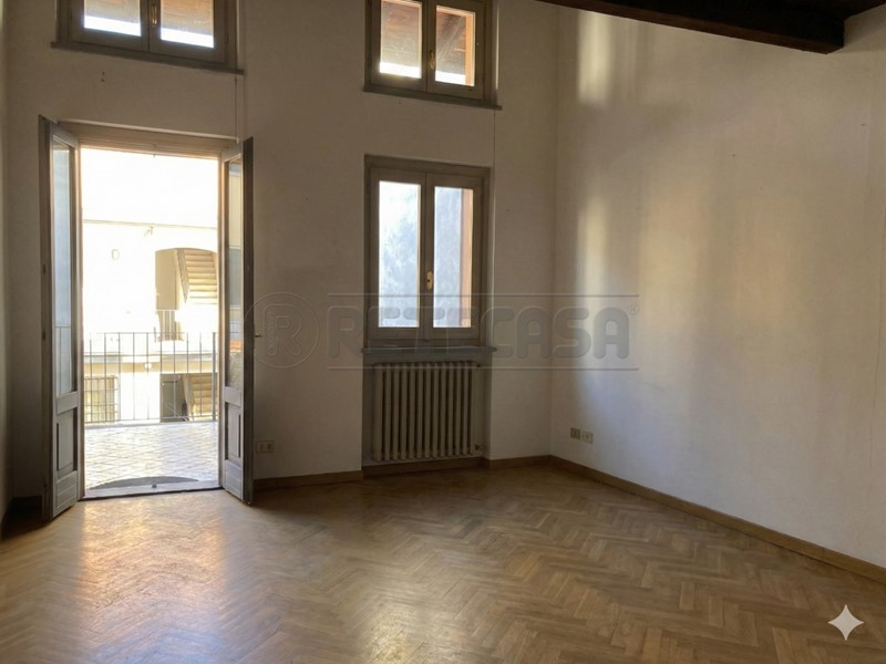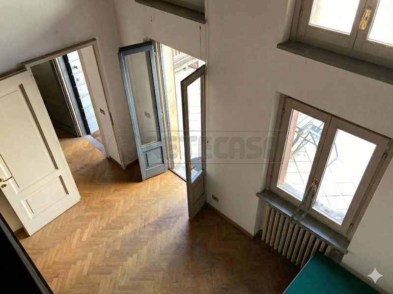 In posizione centralissima, caratteristica soluzione abitativa ubicata in palazzo d'epoca fronte piazza. L'abitazione presenta un ingresso indipendente dal cortile comune con scala privata ed è disposta su due livelli: