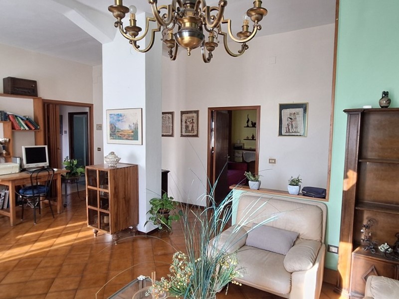 SERRE DI RAPOLANO VENDESI PER NOSTRA ESCLUSIVA Appartamento luminoso e panoramico libero su 4 lati al piano secondo di un piccolo condominio. L'appartamento di sviluppa su un unico piano ed è composto da: ingresso/disimpegno, salone, cucina abitabile, 3 camere e 2 bagni; annessi terrazzo panoramico oltre ad un balcone verandato. La proprietà si completa con un magazzino, ripostiglio e garage privato e giardino privato al piano terreno. L'immobile viene venduto ammobiliato.