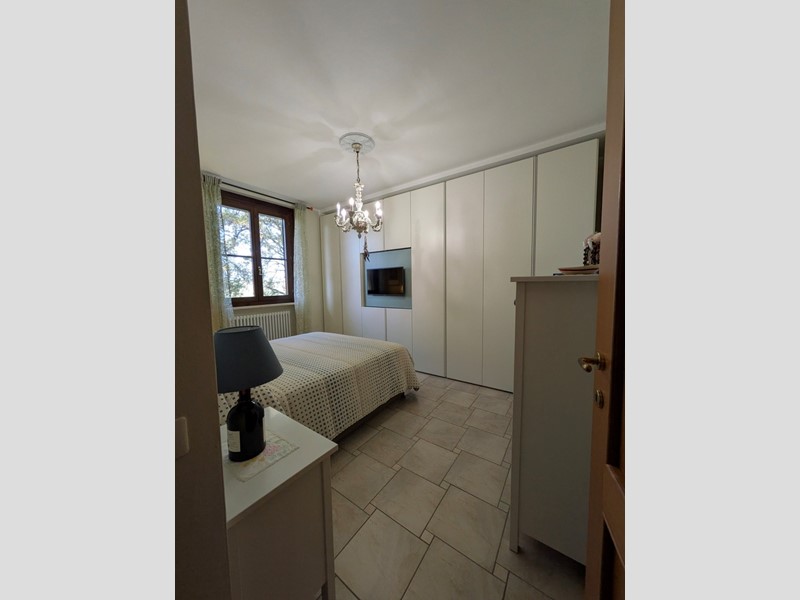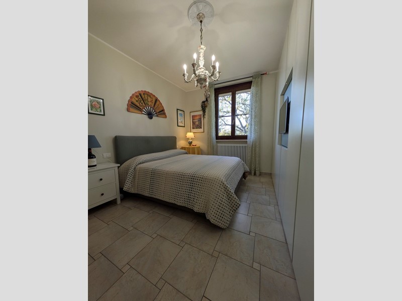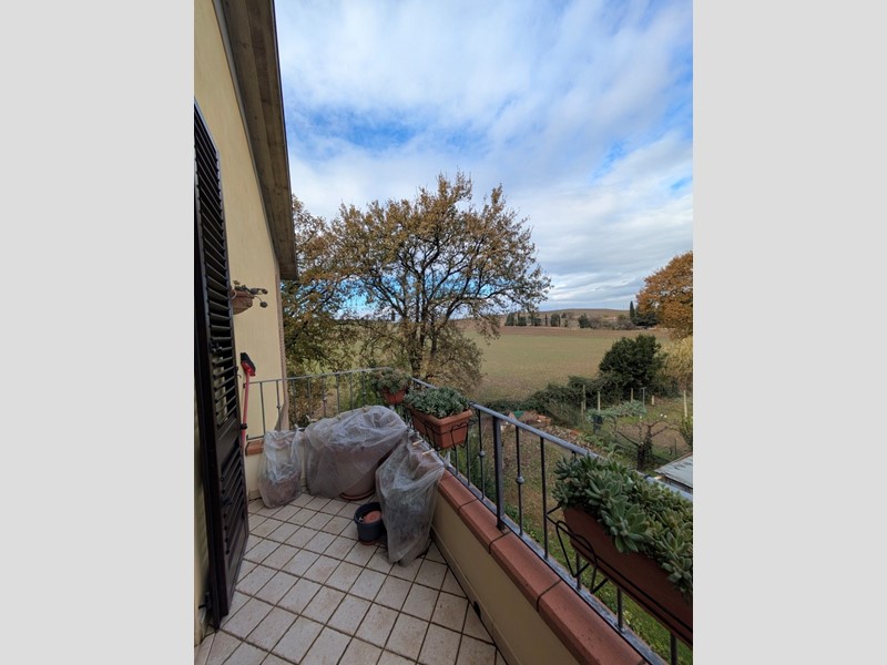ASCIANO VENDESI PER NOSTRA ESCLUSIVA Appartamento nella parte alta del paese, in ottime condizioni, pari al nuovo di 70 mq circa al piano 2° ed ultimo, libero su 3 lati, composto da: ingresso con disimpegno, soggiorno pranzo con angolo cottura, terrazzo panoramico e tenda da sole elettrica, ampia camera matrimoniale, bagno con doccia finestrato e camera singola con terrazzo. Annesso a piano terreno garage di 20 mq. La proprietà è recintata, cancello pedonale e elettrico per le auto e sul tetto sono stati installati pannelli fotovoltaici con accumulo.