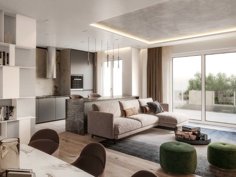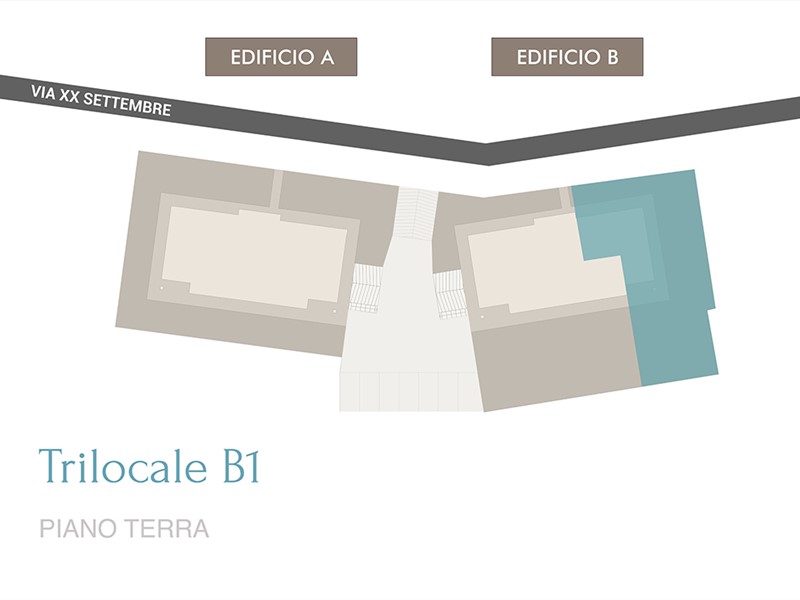 Elegante trilocale di 106,54 mq commerciali posto al piano terra con ampio giardino su tre lati di 214,56 mq.