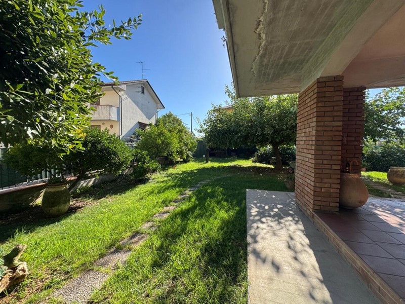 Porzione di villa posta al piano terra, contornata da 250mq di giardino perfettamente mantenuto e finemente piantumato, organizzato come segue: accesso mediante cancelletto sul giardino privato, ingresso su porticato caratterizzato da volte rivestite in pietra con la possibilità di chiudere con infisso per aumentare volume dell'immobile altresì ottenendo un favoloso soggiorno che si affaccia sull'area esterna, soggiorno dotato di camino, angolo cottura con zona pranzo, ampio servizio, due voluminose stanze matrimoniali con possibilità di ricavarne una terza.