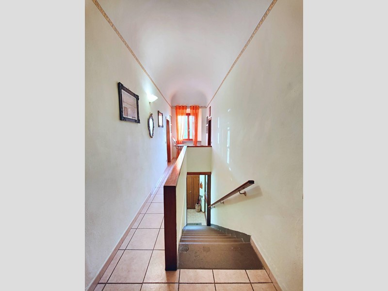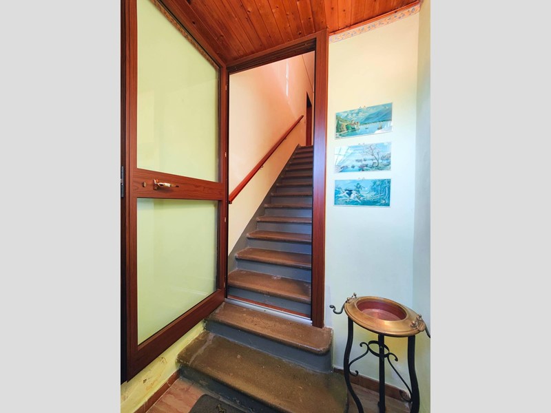 L’accesso avviene dal piano terra, dove un ingresso privato conduce alla scala interna che porta direttamente a un ampio disimpegno centrale, vero cuore dell’abitazione, attorno al quale si sviluppano tutti gli ambienti principali.