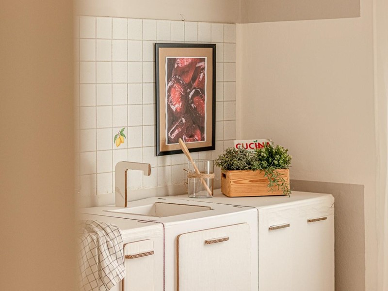 ● Cucina lineare con attacchi già predisposti, anche per lavatrice