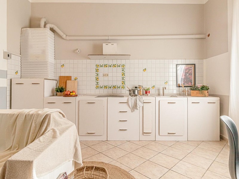 Da qui accedi direttamente in casa attraverso una porta-finestra, entri subito nel soggiorno con angolo cottura, uno spazio funzionale e