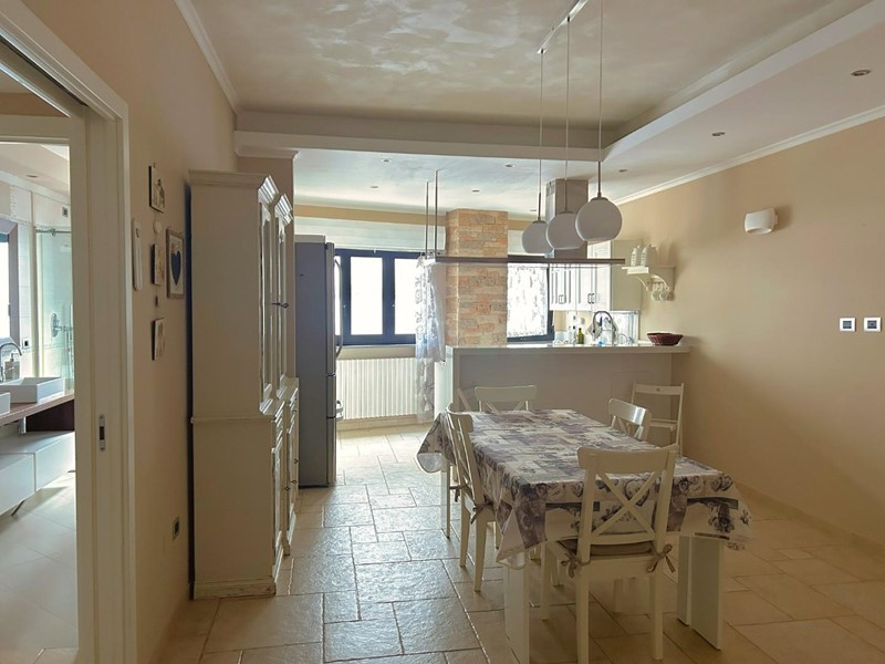 Al primo piano si sviluppa l'appartamento principale, circa 130 mq, caratterizzato da ambienti luminosi e ben distribuiti. Il soggiorno con camino accoglie con un’atmosfera calda e conviviale, mentre la cucina abitabile si integra perfettamente negli spazi della zona giorno. La zona notte comprende due camere da letto di ampia metratura e un bagno rifinito con cura. L'esposizione su più lati garantisce luce naturale durante tutto il giorno, con finiture in ottimo stato e ambienti pronti da vivere.
