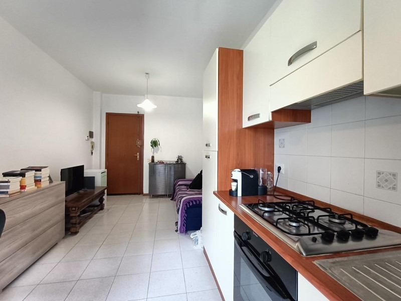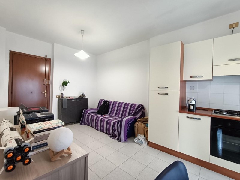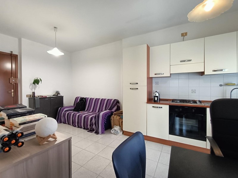 Luminoso appartamento, posto al quinto piano con ascensore, composto da ingresso in soggiorno con angolo cottura e terrazzo, disimpegno, camera matrimoniale e bagno con finestra. Ottime condizioni, ben arredato. Libero dal 10 gennaio 2026. Canone di affitto mensile euro 600 oltre 80 euro di spese condominiali comprensive del consumo di acqua.