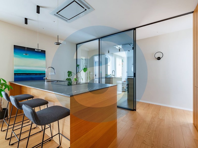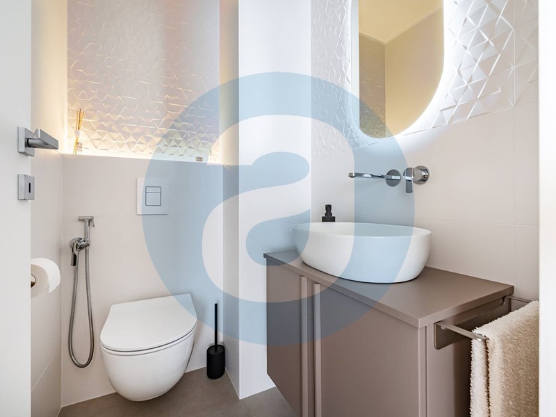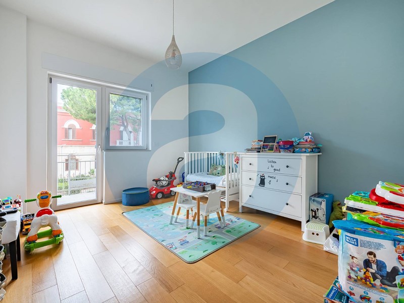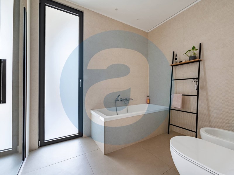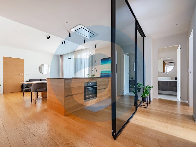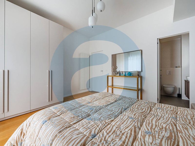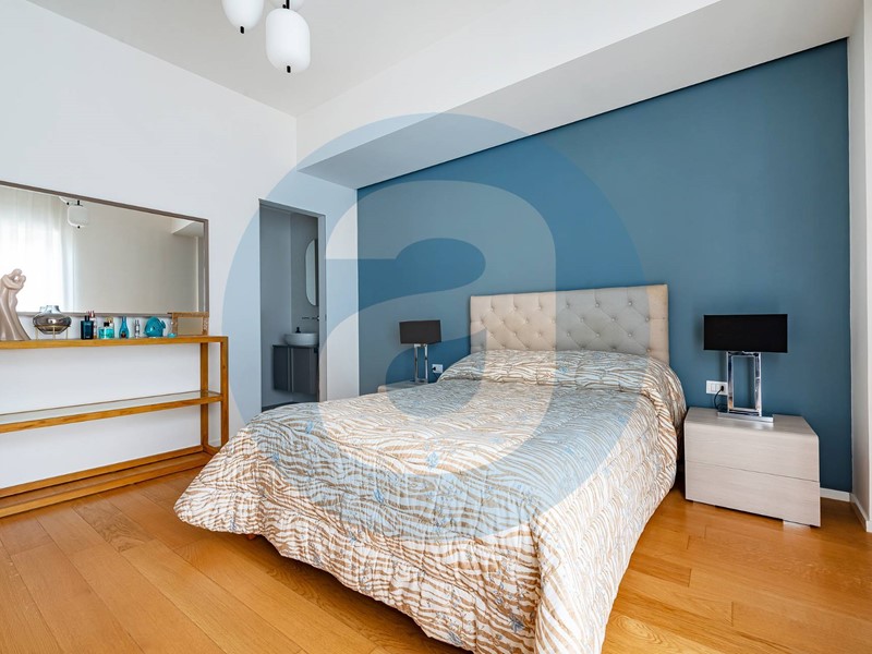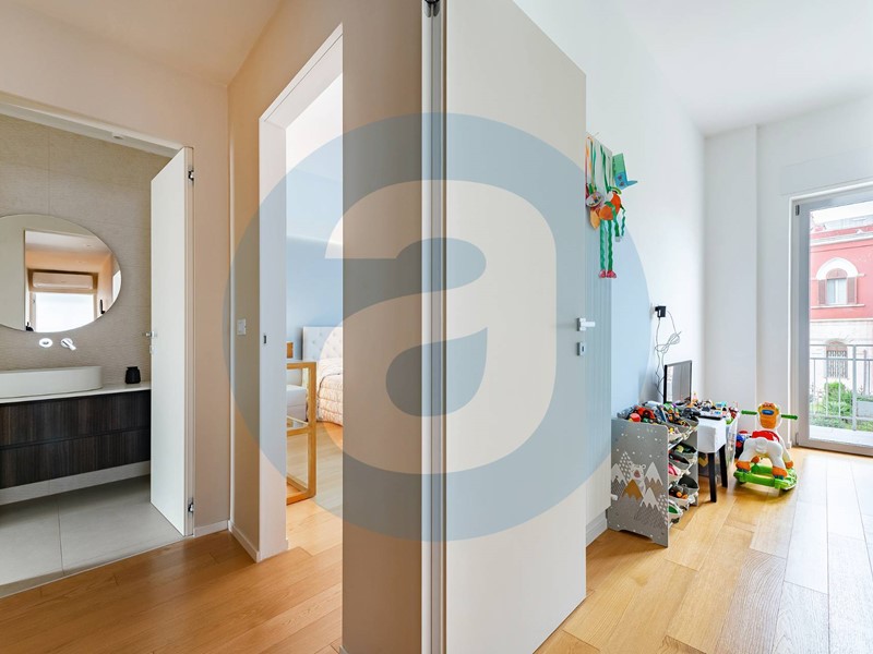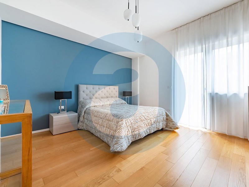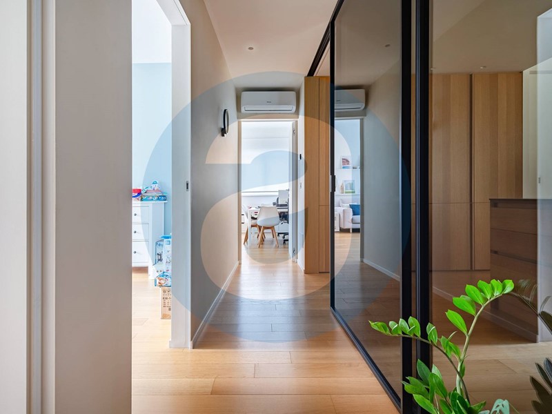 FINITURE: Pavimentazione in parquet rovere naturale. Infissi Oknoplast a taglio termico con doppio vetro, in alluminio antracite nella zona giorno e nei bagni, in pvc bianco nelle camere. Avvolgibili ad apertura elettrica con cassonetti coibentati a filo parete. Porta di ingresso blindata, porte interne a filo muro. Porta della Ferrero Legno in alluminio e vetro grigio per la suddivisione tra zona giorno e zona notte. Controsoffitti con illuminazione integrata, dotati sia di faretti a incasso che di strip led per ottenere diversi scenari di illuminazione. Riscaldamento autonomo con caldaia a condensazione. Termoarredi di design della Irsap. Impianto di climatizzazione caldo/freddo da 18.000 BTU. APE in fase di valutazione.