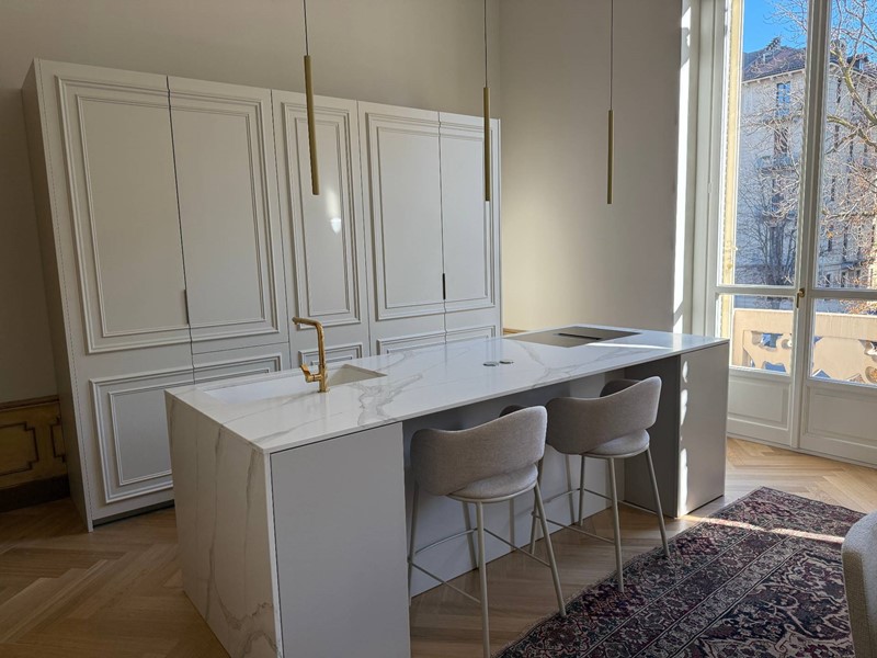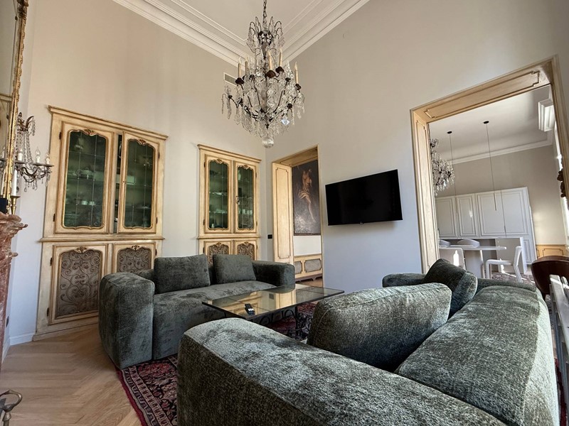 Prestigioso appartamento, completamente arredato, situato al primo piano nobile di Palazzo Cinzano, una residenza di notevole valore storico-artistico, a ridosso dell'isola pedonale del Fante.