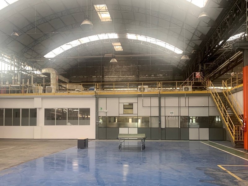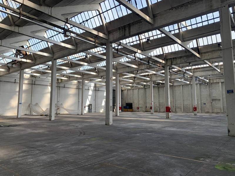 Un capannone di circa mq. 6.000, suddivisi in circa mq. 3.500 al piano terreno (H 5,0 mt), ed ulteriori mq. 2.500 al primo piano (H 8,5 mt), raggiungibili con un grande montacarichi (portata kg. 15.000). L'immobile si presenta in uno stato di conservazione da ripulire