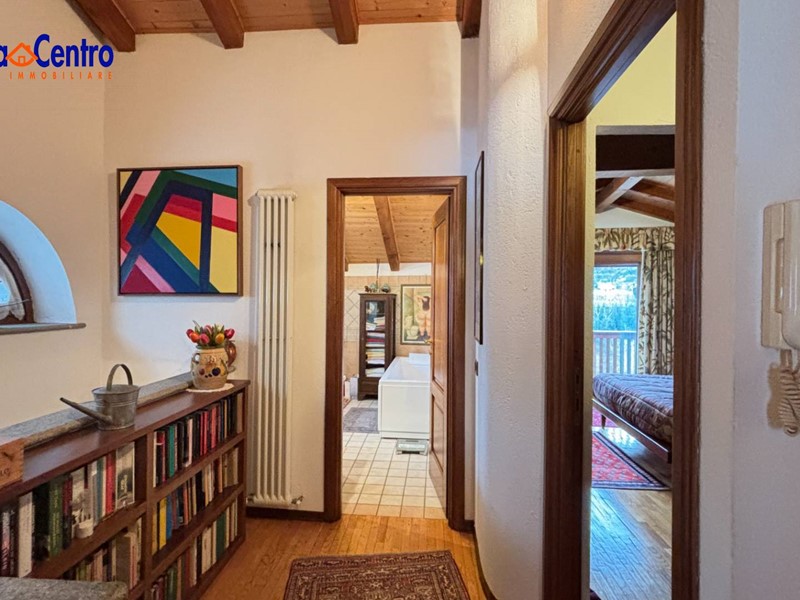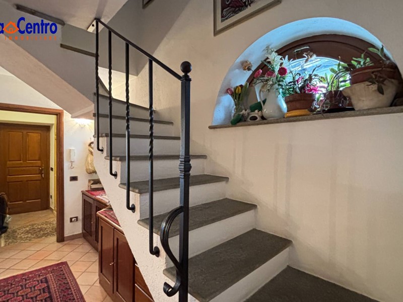 Dalla scala interna si sale al piano superiore composto da un disimpegno, due camere singole con balcone, una camera matrimoniale con balcone e cabina armadio e da un secondo servizio finestrato con vasca.